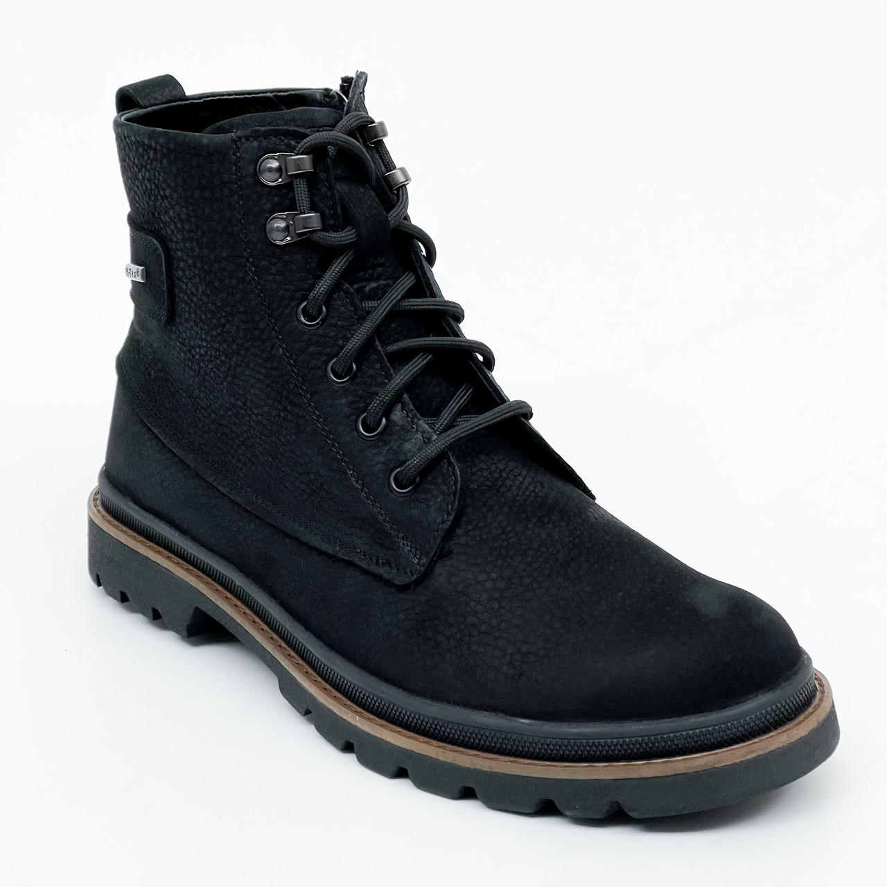 Початок опису Дана модель черевиків чудове рішення в холодну або мокру погоду. Чоловічі шкіряні черевики виготовлені лише з якісних та натуральних матеріалів. Наповнювач із хутра чудово утримує тепло та захищає ноги від морозу. Підошва взуття виготовлена із термоеластопласту. Вона убезпечить від промокання і має високий коефіцієнт тертя, це забезпечить стійкість на мокрій дорозі чи ожеледиці. Черевики у цьому стилі мають стриманий дизайн, який підійде для повсякденного носіння та забезпечать комфортність та практичність. Модель доступна у чорному класичному кольорі.